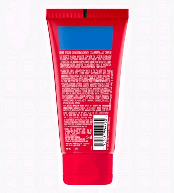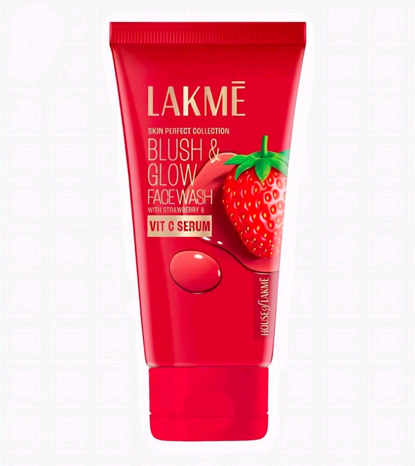 Lakme Blush & Glow Exfoliating Face Wash with Vitamin C Serum, Hydrating and Gentle Facewash with Strawberry Fruit Extracts, 100gm