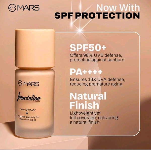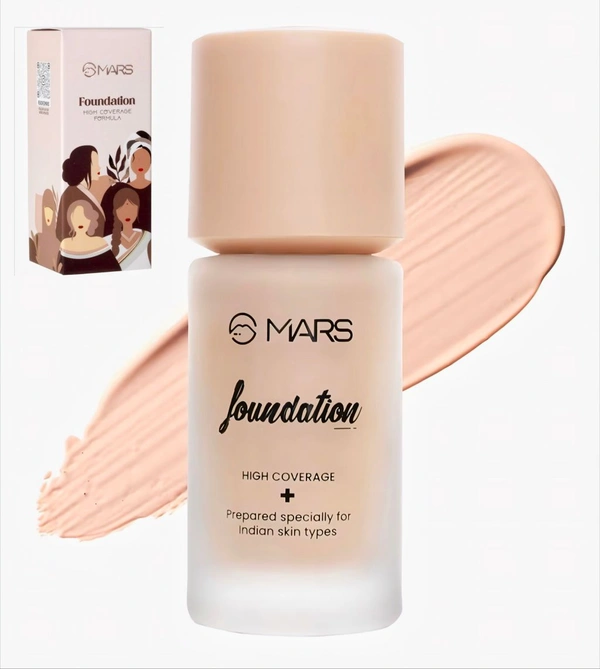 HIGH COVERAGE- The MARS High Coverage Liquid Foundation is designed to provide exceptional coverage, effectively camouflaging imperfections, including blemishes, redness, and uneven skin tone. It creates a flawless canvas for your makeup, giving you a perfected complexion.