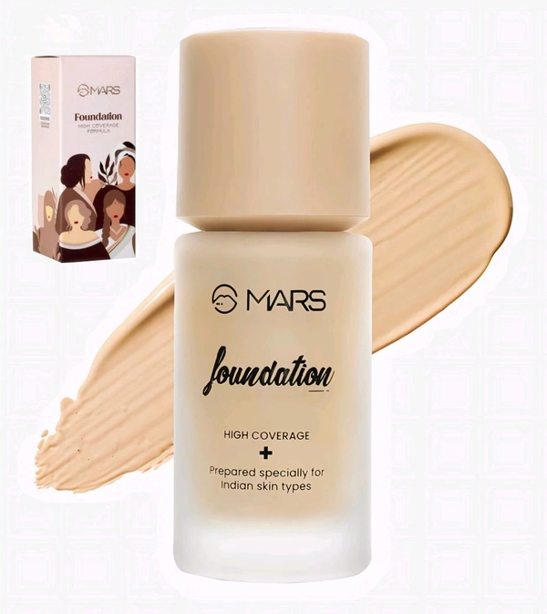 HIGH COVERAGE- The MARS High Coverage Liquid Foundation is designed to provide exceptional coverage, effectively camouflaging imperfections, including blemishes, redness, and uneven skin tone. It creates a flawless canvas for your makeup, giving you a perfected complexion.