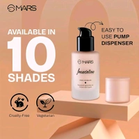 AVAILABE IN 8 SHADES- With a diverse range of six shades, the MARS High Coverage Liquid Foundation offers options to suit various skin tones and undertones. From fair to deep, you can find the perfect match for your complexion, ensuring a seamless blend and a natural appearance.