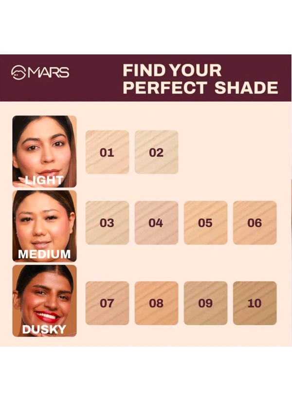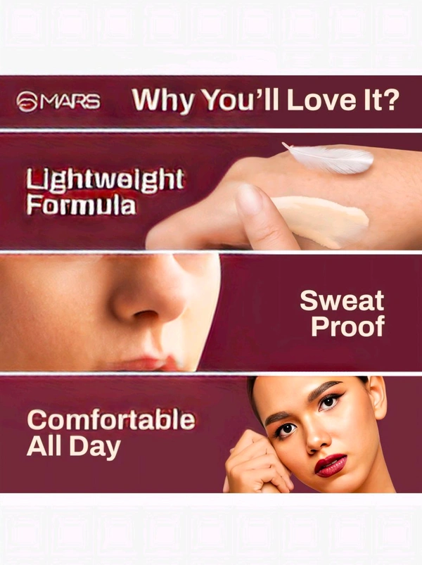 Experience effortless blending and a flawless matte finish with MARS Zero Blend Foundation. Its lightweight, hydrating formula glides on like a dream, providing buildable coverage that feels comfortable all day. Designed to suit every Indian skin tone, it offers a smooth, second-skin effect that lasts through sweat and humidity.