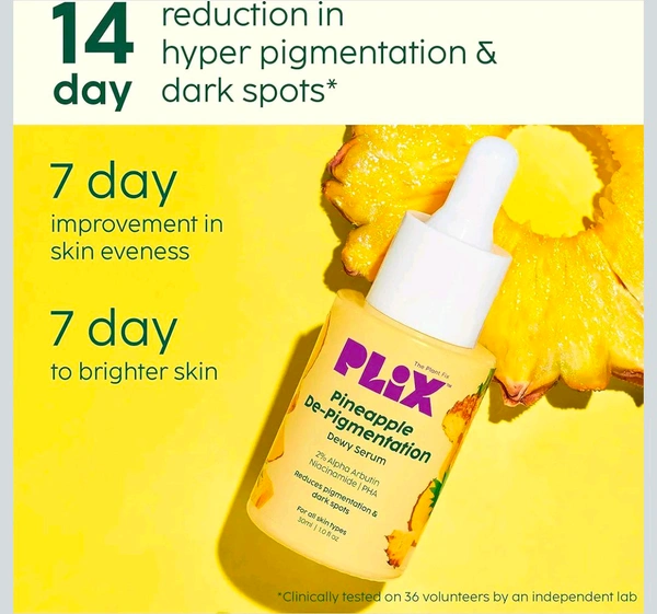 The Plant Fix Plix 2% Alpha Arbutin Pineapple De-Pigmentation Dewy Face Serum for Pigmentation & Dark Spots Removal for Unisex with 10% Niacinamide, 5% PHA for All Skin, 30ml (Pack of 1)