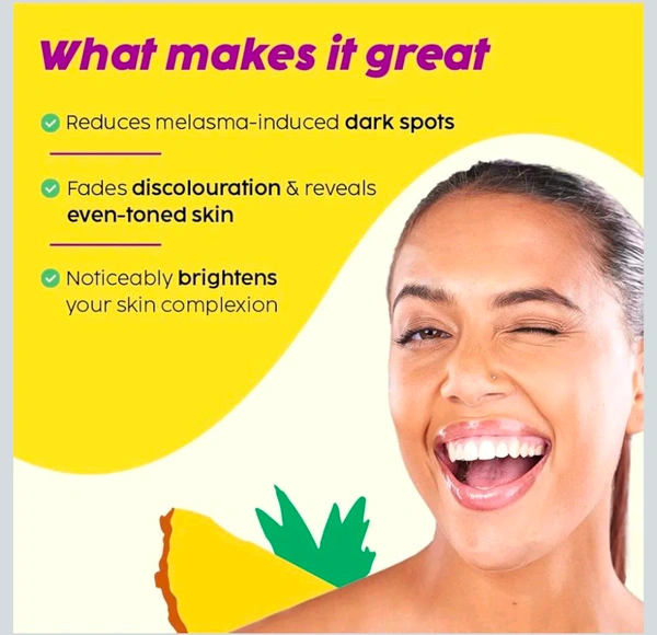 Product Benefits - Pigmentation, Dark Spots Removal, Melasma, Fades Discoloration, Even Skin Tone, Brightening, Dullness, Hyperpigmentation, Radiant Skin, Reduces Acne Marks, Skin Pores, Irritation, Exfoliates, Hydrates
